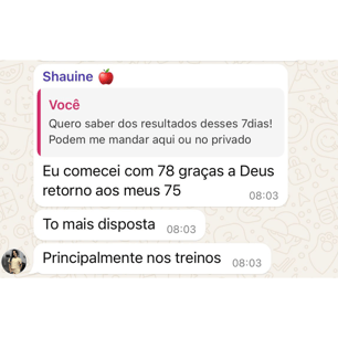 Shauine perdeu 3kg, voltou ao peso que ama e sentiu mais energia no treino.